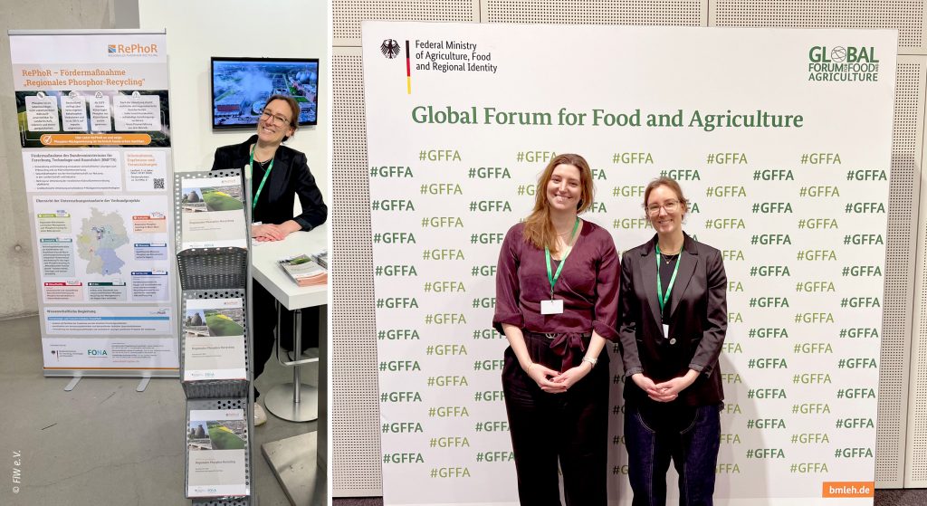 Die internationale Konferenz Global Forum for Food and Agriculture (GFFA) bietet ein breites Angebot zur internationalen Vernetzung im Zeichen der zentralen Zukunftsfragen der globalen Landwirtschafts- und Ernährungspolitik – über insgesamt 16 Expert Panels, 3 High Level Panels und eine Kooperationsbörse. Die zweitägige Kooperationsbörse bietet Teilnehmerinnen und Teilnehmern aus Wirtschaft, Wissenschaft und Verbänden sowie Startups Raum und Gelegenheit für Dialog und Erfahrungsaustausch. Hier war das FiW mit einem eigenen Stand zur BMFTR-Fördermaßnahme RePhoR – Regionales Phosphor-Recycling beteiligt und konnte die Vorhabensinhalte in zahlreichen individuellen Gesprächen mit internationalen Teilnehmerinnen und Teilnehmern präsentieren und näher erläutern.